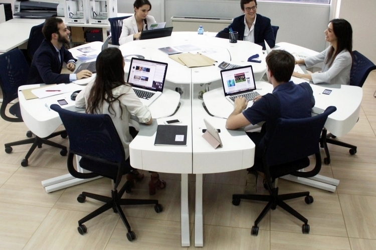Ergon Desk is a six-person desk consisting of six workstations arranged in a circle, making it easy to collaborate with everyone on the desk.